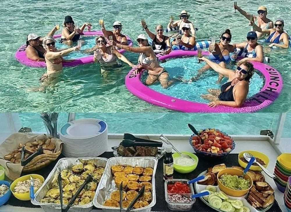 Enjoy a swim in crystal-clear, waist-to-chest-deep water and take advantage of our cool inflatable floaties for fun photo opportunities. Sip on bottomless mimosas, Bloody Mary's, or any of our wide selection of freshly prepared cocktail drinks.